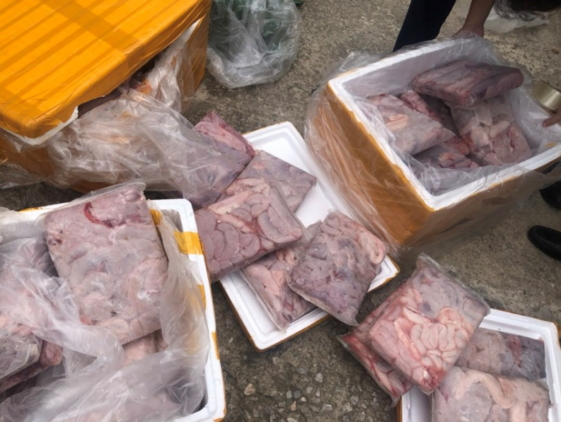 Đáng chú ý, toàn bộ số lượng hàng hóa trên không có thông tin về nguồn gốc xuất xứ, không có chứng nhận quy định an toàn thực phẩm; không có giấy kiểm dịch động vật trên cạn và các hóa đơn, chứng từ theo quy định.