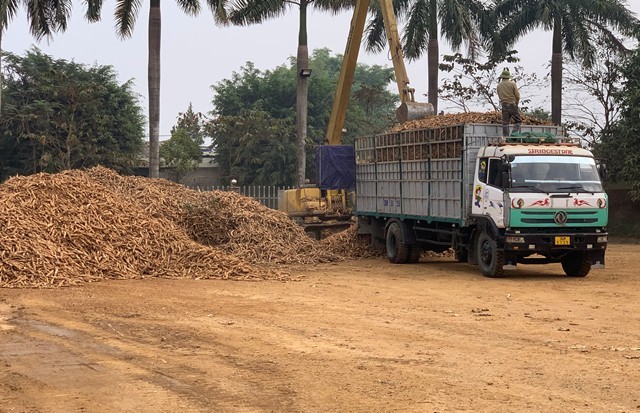 | Sắn tập kết tại nhà máy chế biến tinh bột sắn phúc thịnh trước khi chế biến |