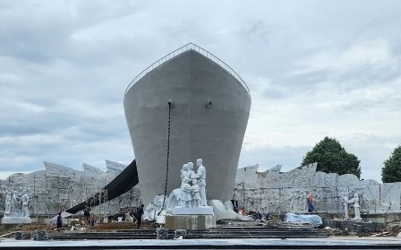 | Tượng đài con tàu tập kết ra Bắc thể hiện tình cảm thủy chung, son sắt của nhân dân 2 miền Nam - Bắc xây dựng tại phường Quảng Tiến, thành phố Sầm Sơn sắp sửa hoàn thành |