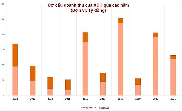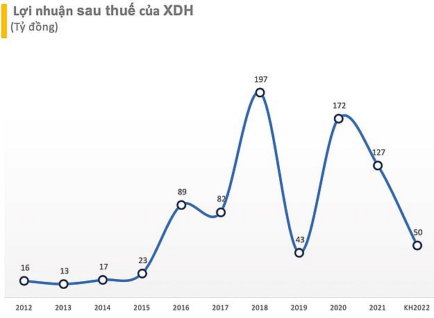 Đỉnh cao là năm 2018 khi lợi nhuận sau thuế doanh nghiệp gần cán mốc 200 tỷ đồng nhờ nguồn doanh thu BĐS tăng mạnh lên gần 950 tỷ đồng. Tuy đến năm 2019, KQKD bắt đầu “hụt hơi” khi không còn ghi nhận nguồn thu lớn từ mảng BĐS. Song trong giai đoạn năm 2020 – 2021, XDH vẫn duy trì lợi nhuận trên 100 tỷ đồng.