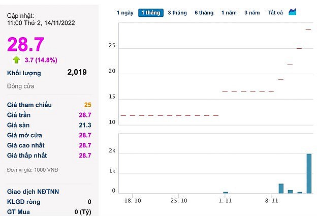 | XDH tăng mạnh từ 11.900 đồng/cp (31/10) lên mức 28.700 đồng/cp (phiên 14/11) |