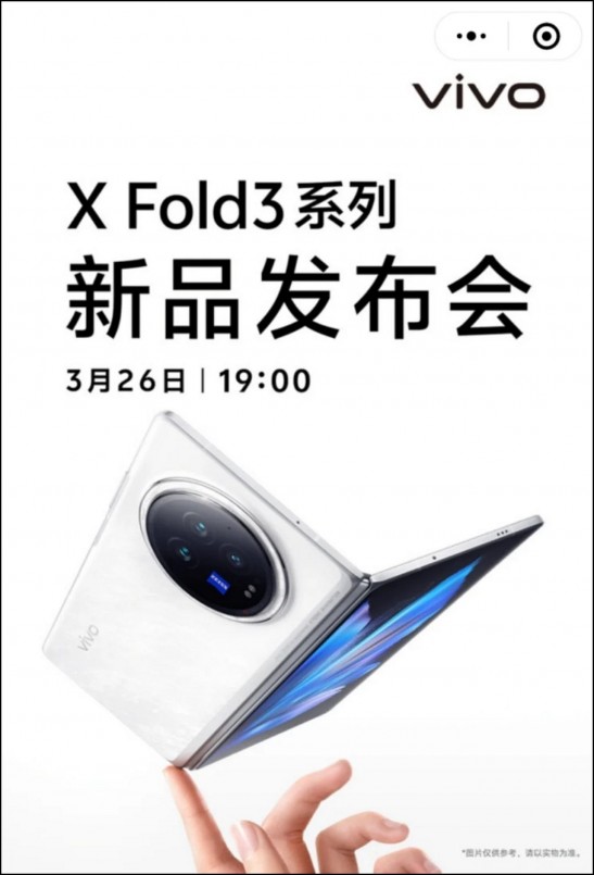 Tấm poster tiết lộ Vivo X Fold 3 series sẽ được ra mắt vào lúc 19:00 (giờ địa phương) ngày 26/3 tại Trung Quốc. Dòng sản phẩm này sẽ có hai model là Vivo X Fold 3 và X Fold 3 Pro.