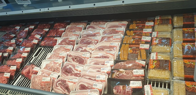 Thịt lợn tươi phủ kín trên kệ trong các siêu thị.
