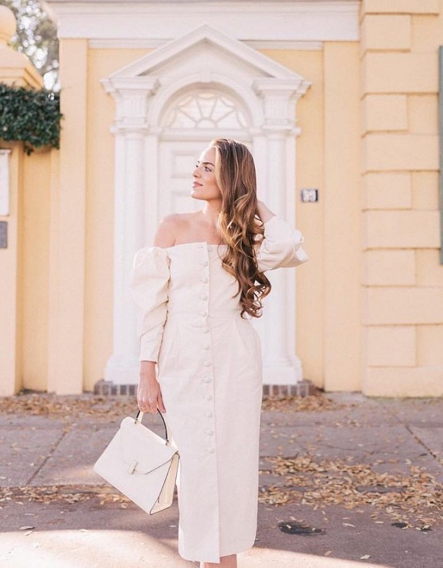 5. Mẫu váy trẻ trung sang trọng: Váy trễ vai hờ hững