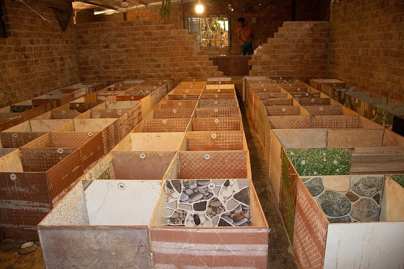 Không gian nuôi được anh chia từng ô nhỏ với diện tích 50x50cm bằng gạch men. Vì đã quen với môi trường sống ở hang nên chuồng trại không cần quá sáng, nhiệt độ thích hợp từ 25-30 độ, vào mùa đông phải sưởi ấm và mùa hè phải mát. Đầy đủ các yếu tố này thì dúi sẽ sinh sản và phát triển nhanh.