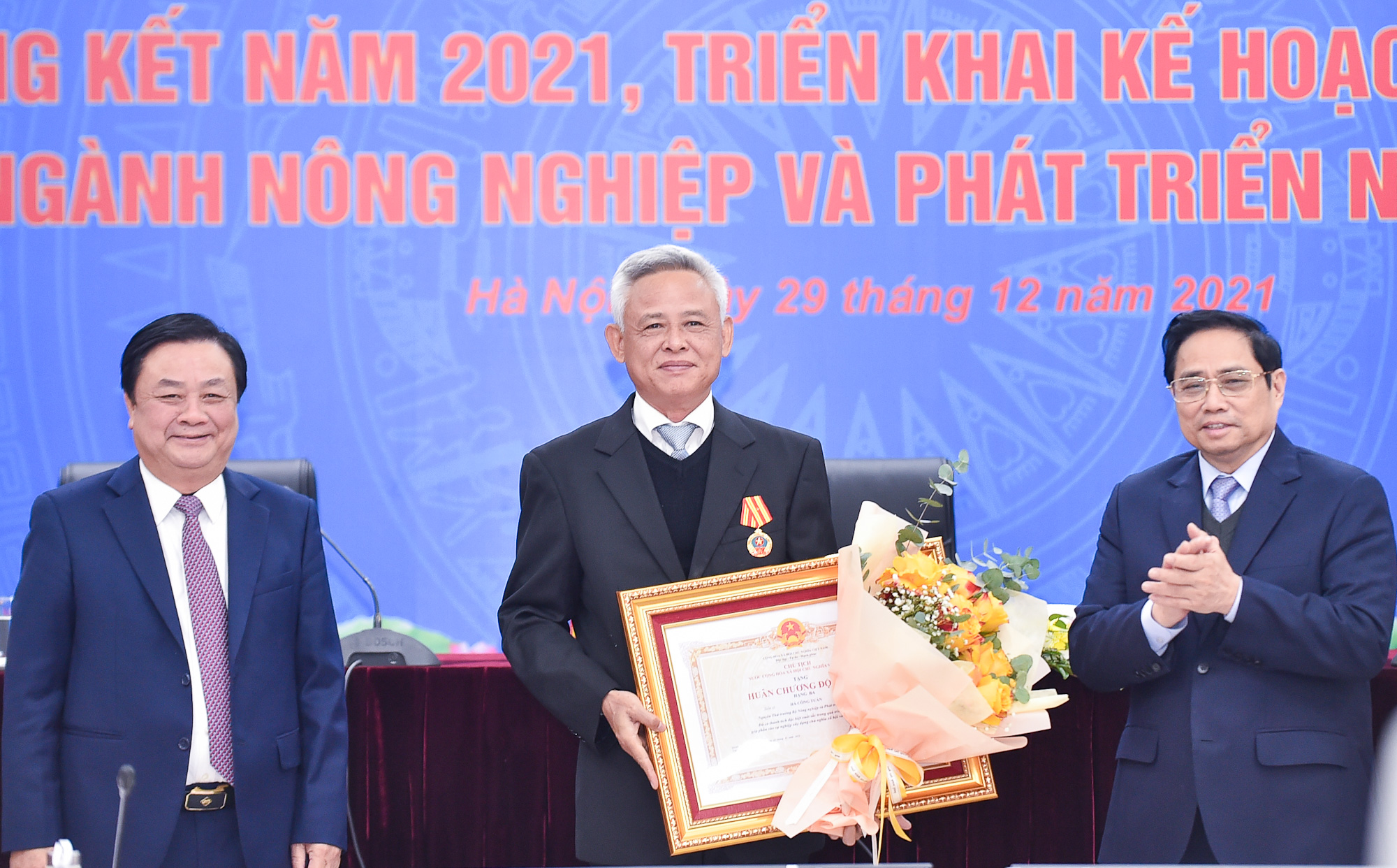 | Thay mặt lãnh đạo Đảng, Nhà nước, Thủ tướng Phạm Minh Chính trao Huân chương Độc lập hạng Ba cho nguyên Thứ trưởng thường trực Bộ Nông nghiệp và Phát triển nông thôn Hà Công Tuấn - Ảnh: VGP/Nhật Bắc |