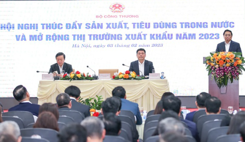 Sáng 3/2, Thủ tướng Chính phủ Phạm Minh Chính đã dự, chủ trì Hội nghị thúc đẩy sản xuất, tiêu dùng trong nước và mở rộng thị trường xuất khẩu năm 2023 do Bộ Công Thương tổ chức.