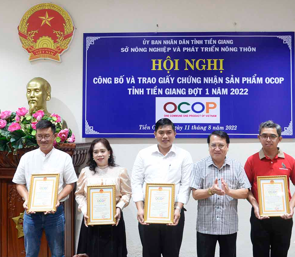 Tính đến nay, Tiền Giang đã xây dựng và công nhận 119 sản phẩm thuộc Chương trình Mỗi xã một sản phẩm (OCOP); trong đó, có 75 sản phẩm 4 sao và 44 sản phẩm 3 sao với 36 chủ thể tham gia, gồm 8 hợp tác xã (HTX), 22 doanh nghiệp và 6 hộ sản xuất kinh doanh.