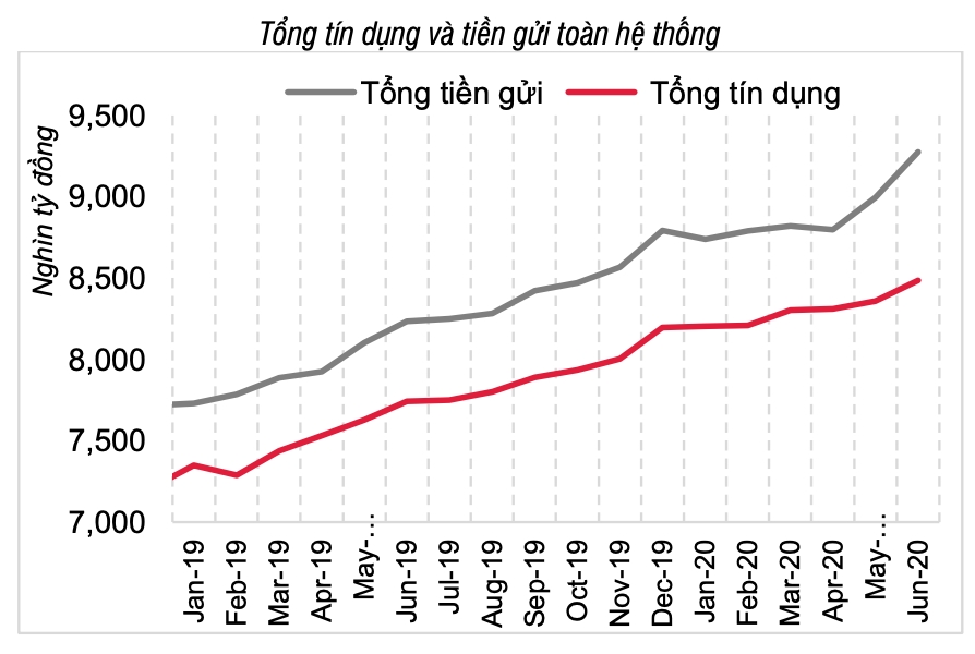 TH&SP Báo cáo thị trường tiền tệ mới đây của Công ty cổ phần Chứng khoán SSI cho biết, sau khi tăng tốc vào cuối tháng 6, tín dụng tháng 7 hầu như không tăng trưởng ở hầu hết ngân hàng thương mại (NHTM).