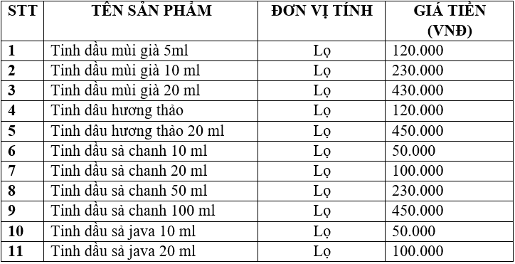 Cơ sở luôn tự hào mang đến cho khách hàng sản phẩm tinh dầu nguyên chất, với món quà vô giá này hy vọng người tiêu dùng có thể hoàn toàn yên tâm lựa chọn cho mình bí quyết thư giãn, trị liệu, chăm sóc sức khỏe và chăm sóc sắc đẹp toàn diện.