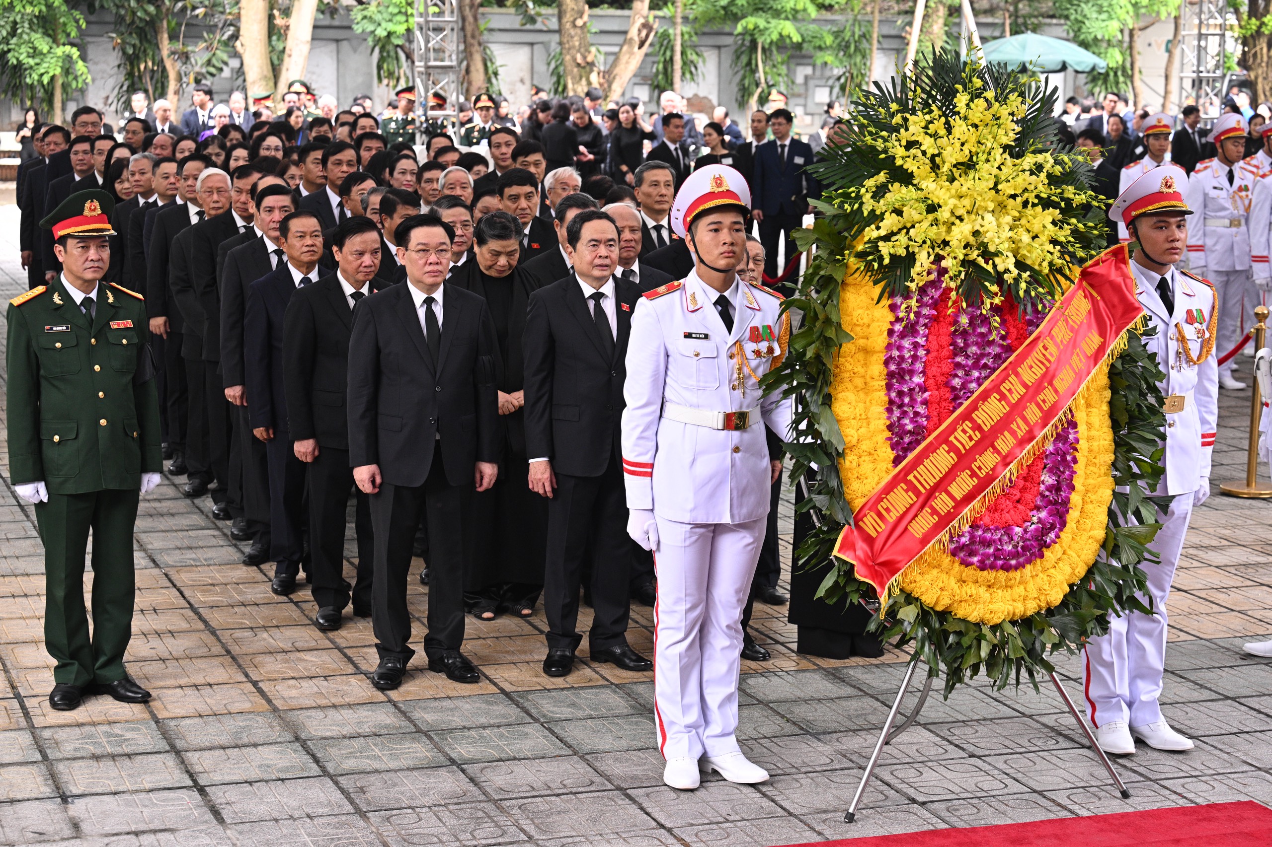 7h33: Đoàn Quốc hội nước Cộng hòa xã hội chủ nghĩa Việt Nam do đồng chí Trần Thanh Mẫn, Ủy viên Bộ Chính trị, Chủ tịch Quốc hội làm Trưởng đoàn kính viếng đồng chí Nguyễn Phú Trọng