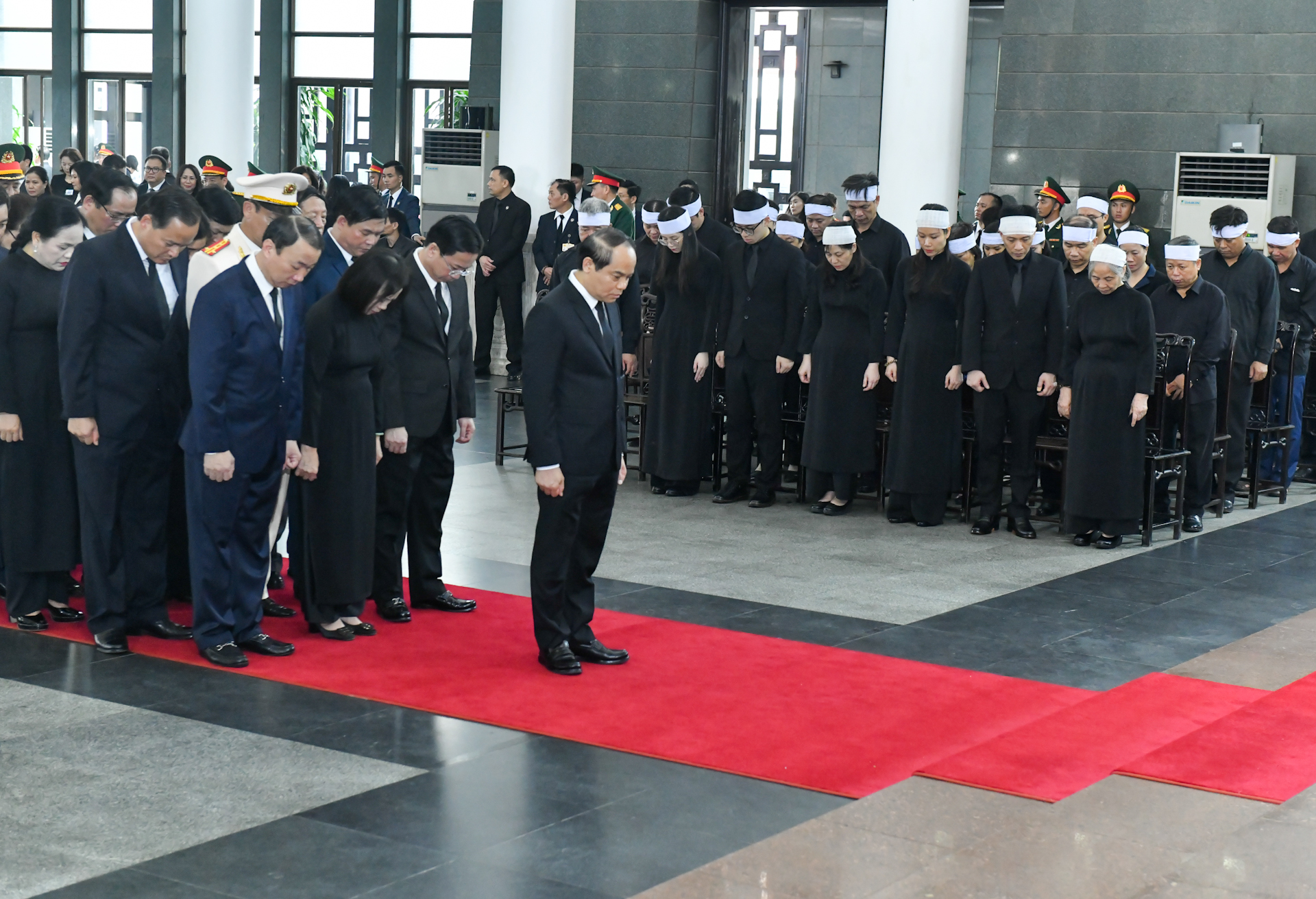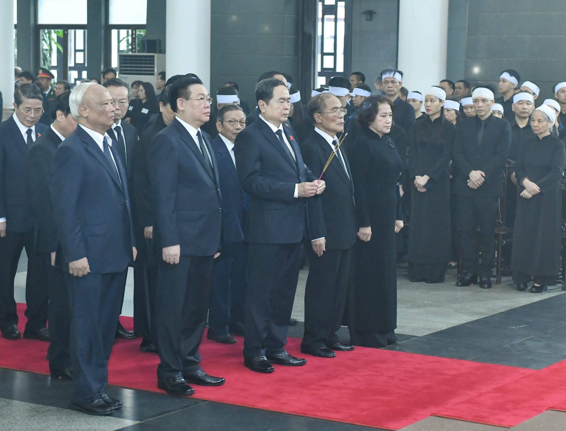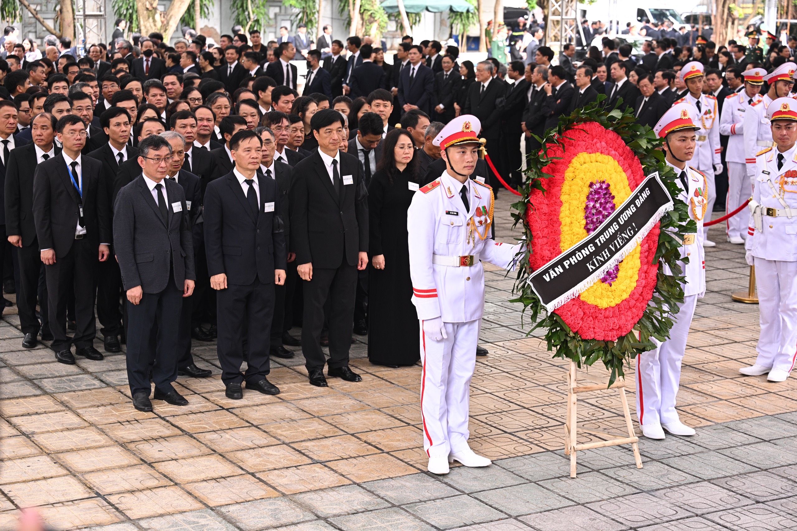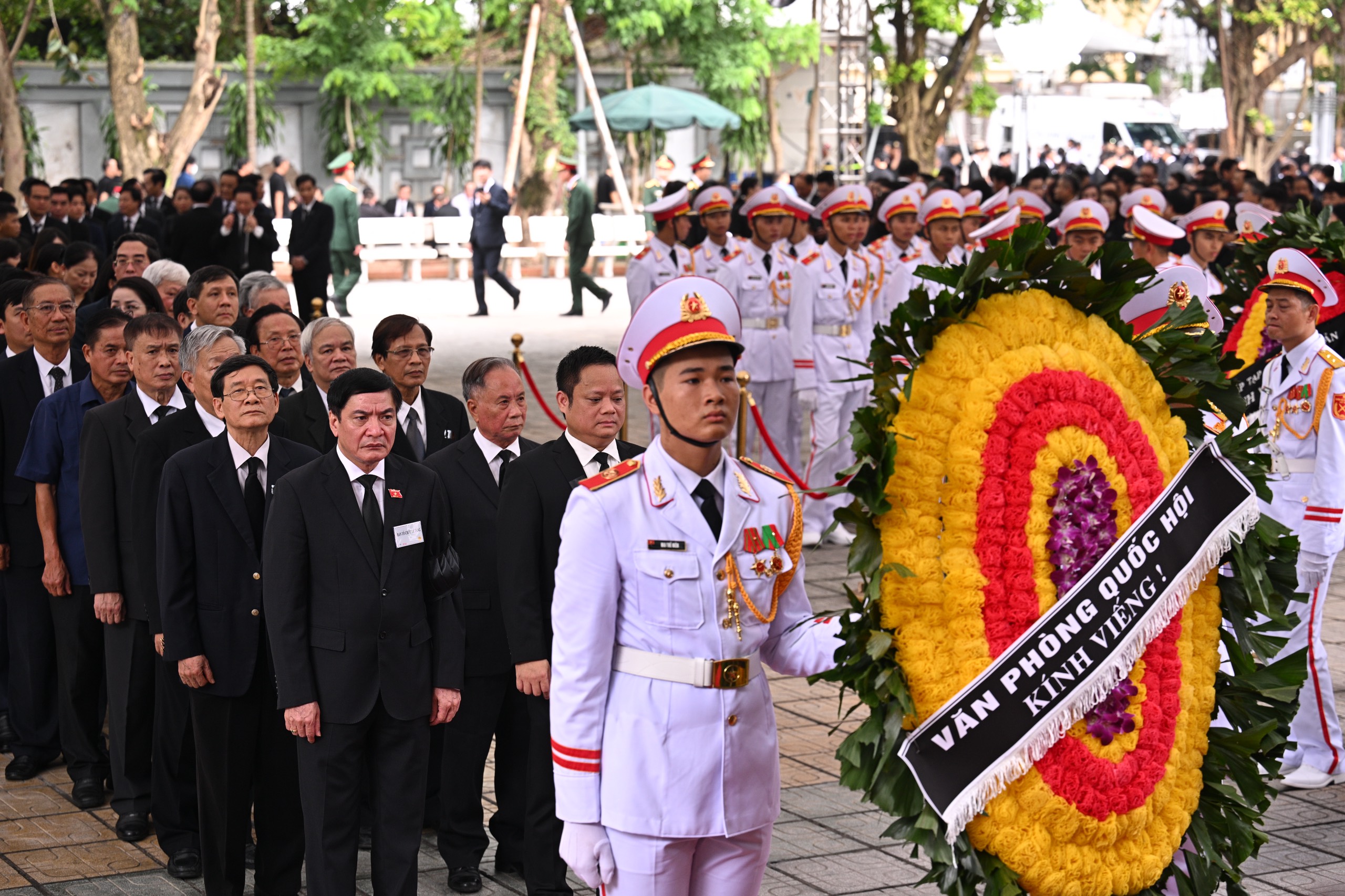 9h43: Đoàn Văn phòng Quốc hội do Tổng thư ký Quốc hội, Chủ nhiệm Văn phòng Quốc hội làm trưởng đoàn vào kính viếng Tổng Bí thư Nguyễn Phú Trọng