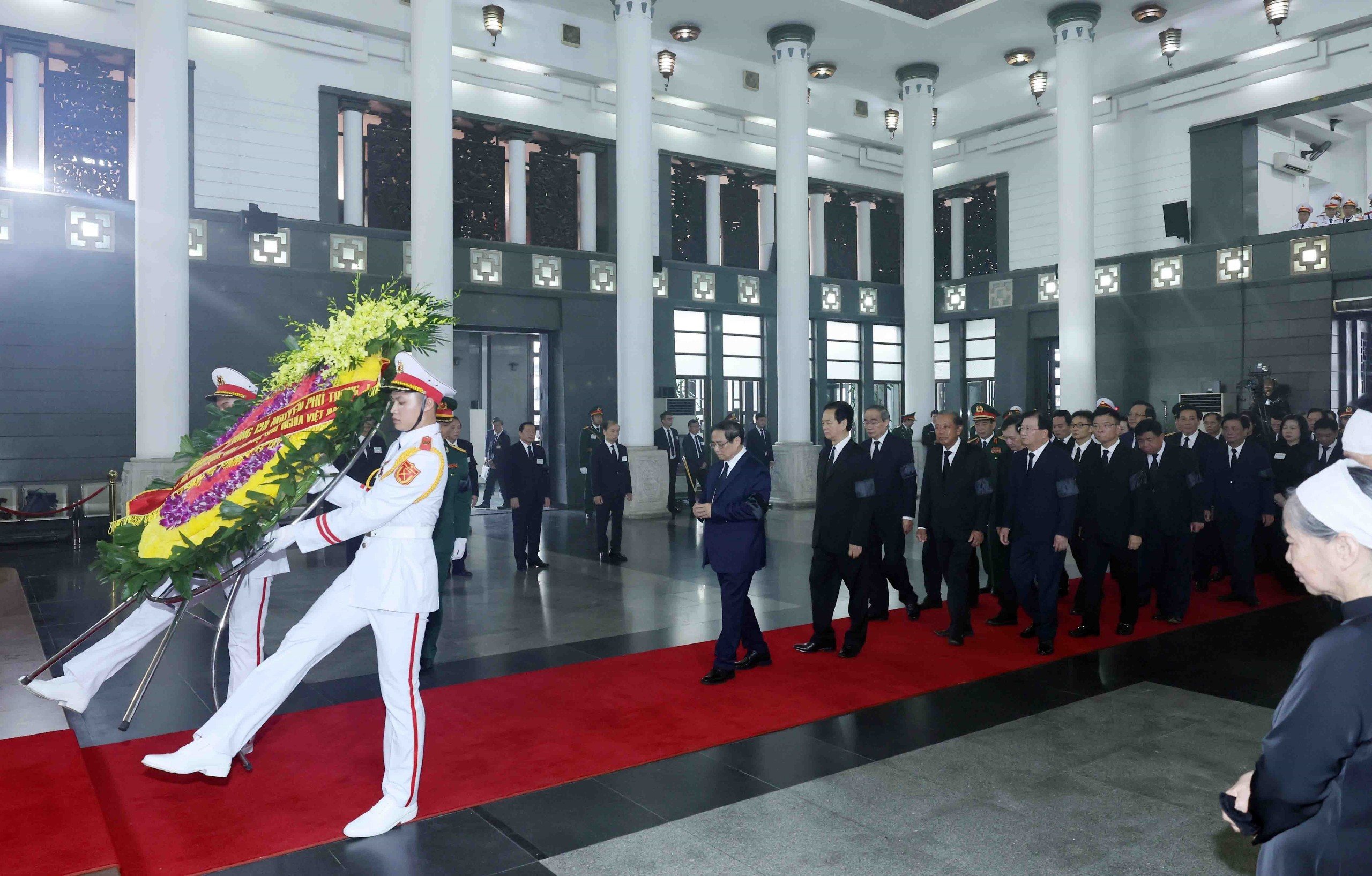 7h24: Đoàn Chính phủ nước Cộng hòa xã hội chủ nghĩa Việt Nam do đồng chí Phạm Minh Chính - Ủy viên Bộ Chính trị, Thủ tướng Chính phủ nước Cộng hòa xã hội chủ nghĩa Việt Nam làm Trưởng Đoàn vào kính viếng Tổng Bí thư Nguyễn Phú Trọng.