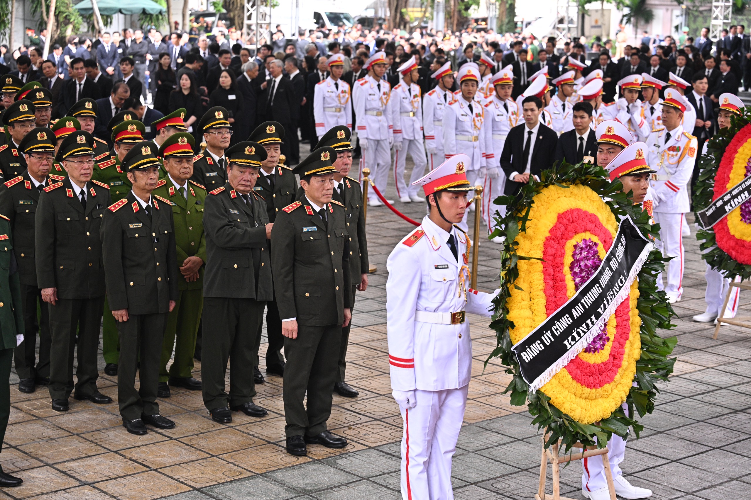 8h12: Đoàn Đảng ủy công an Trung ương, Bộ Công an do Ủy viên Ban Chấp hành Trung ương Đảng Cộng sản Việt Nam khóa XIII, Bí thư Đảng ủy Công an Trung ương, Bộ trưởng Bộ Công an Lương Tam Quang làm Trưởng đoàn kính viếng Tổng Bí thư Nguyễn Phú Trọng.