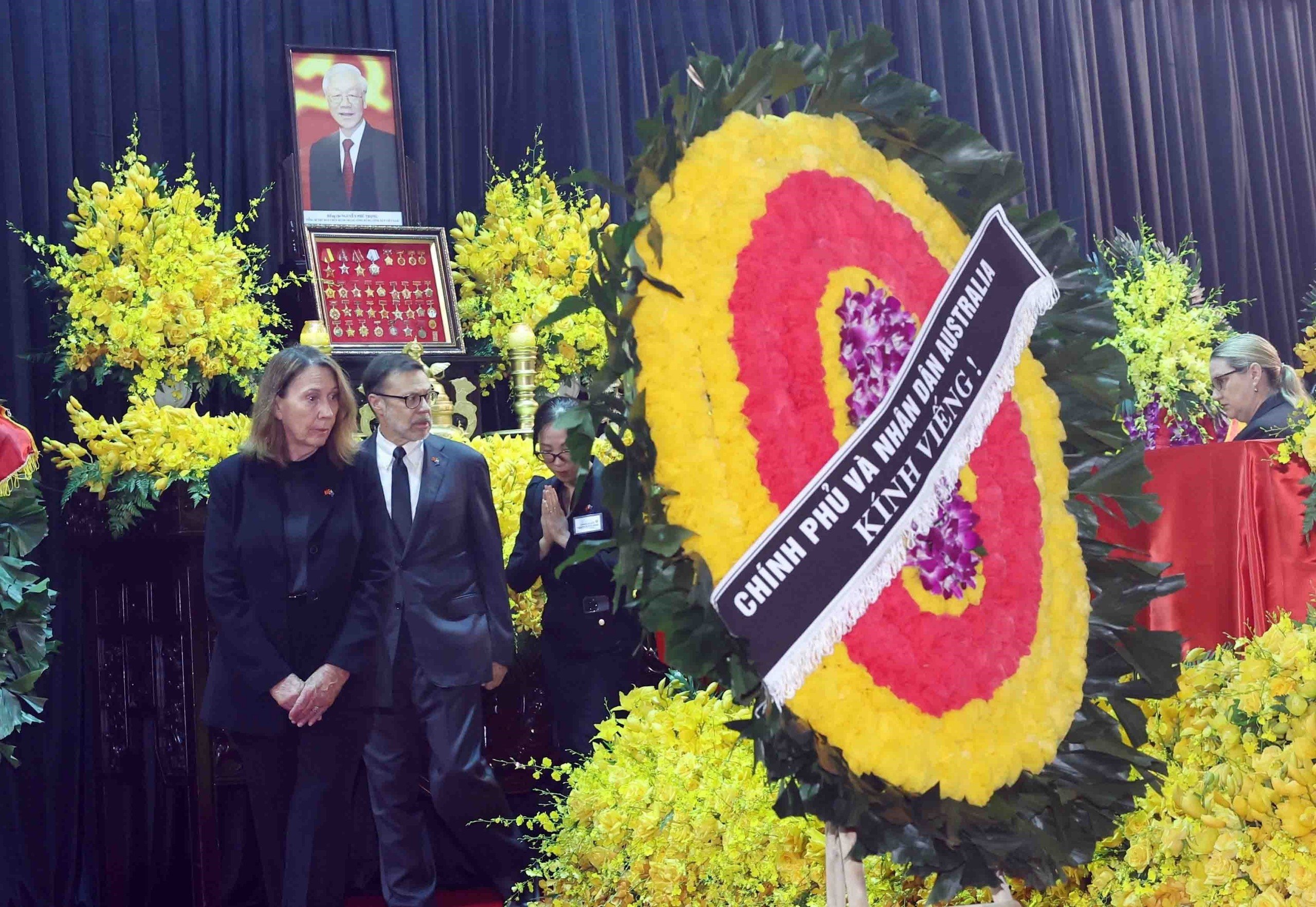 7h54: Đoàn Australia do bà Sue Lines, Chủ tịch Thượng viện làm Trưởng đoàn kính viếng Tổng Bí thư Nguyễn Phú Trọng