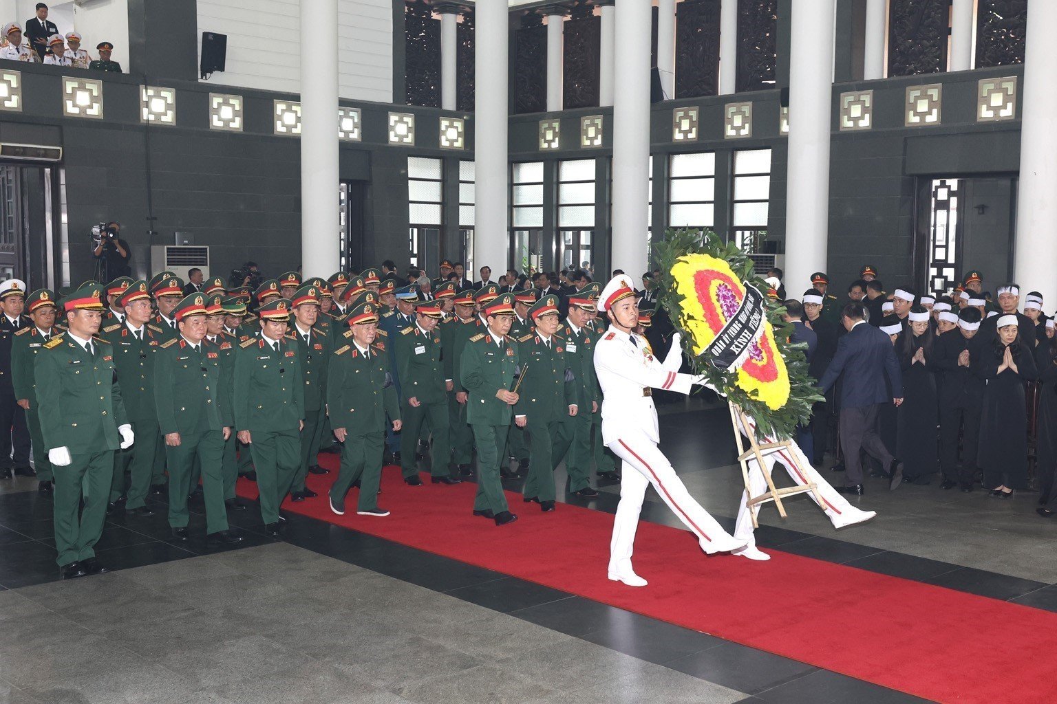8h03: Đoàn Quân uỷ Trung ương, Bộ Quốc phòng, do Đồng chí Đại tướng Phan Văn Giang, Uỷ viên Bộ Chính trị, Phó Bí thư Quân uỷ Trung ương, Bộ trưởng Bộ Quốc phòng làm Trưởng đoàn vào kính viếng đồng chí Nguyễn Phú Trọng.