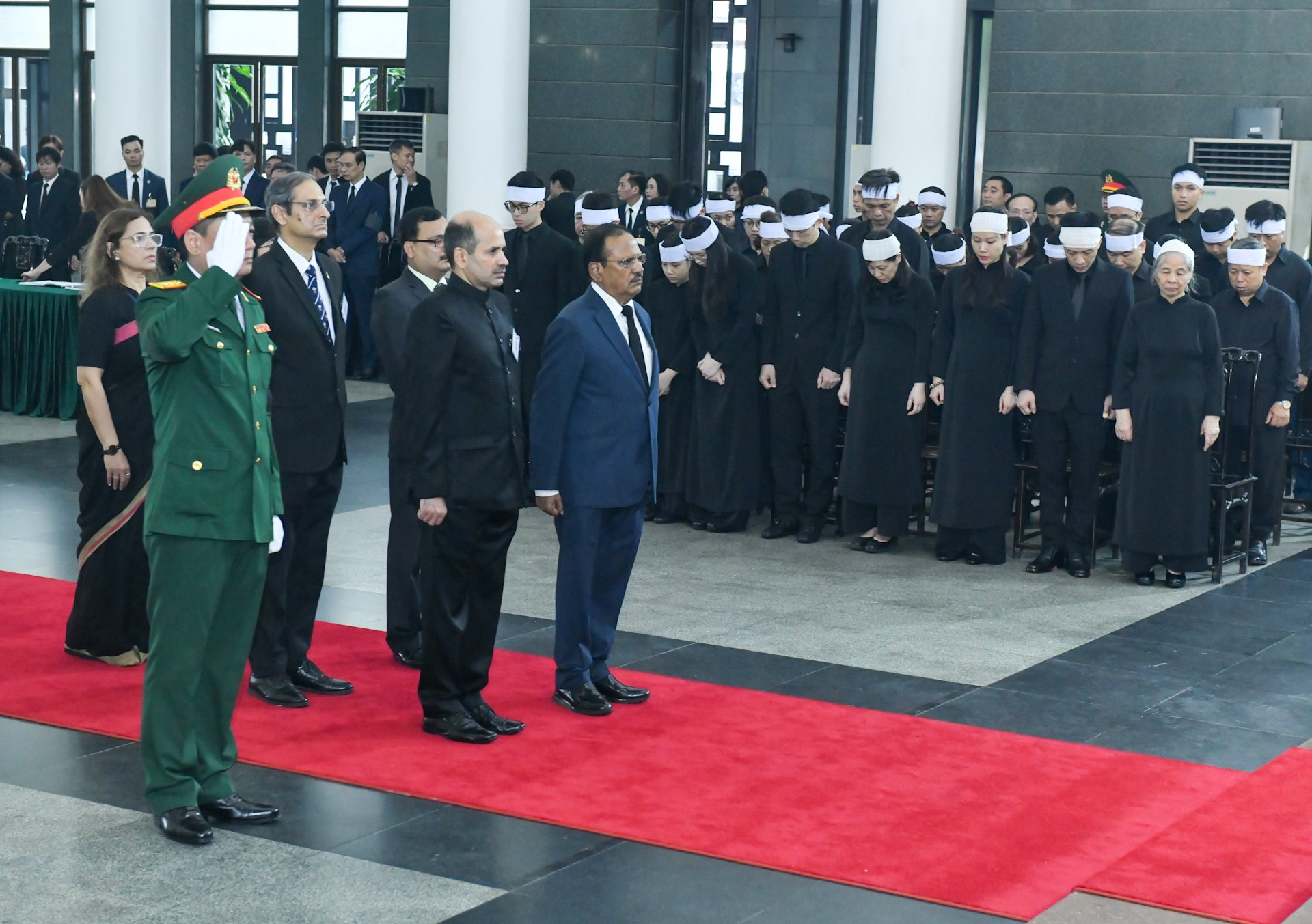 7h58: Đoàn Ấn Độ do Cố vấn An ninh Quốc gia Ấn Độ Ajit Doval làm Trưởng đoàn vào viếng Tổng Bí thư Nguyễn Phú Trọng.