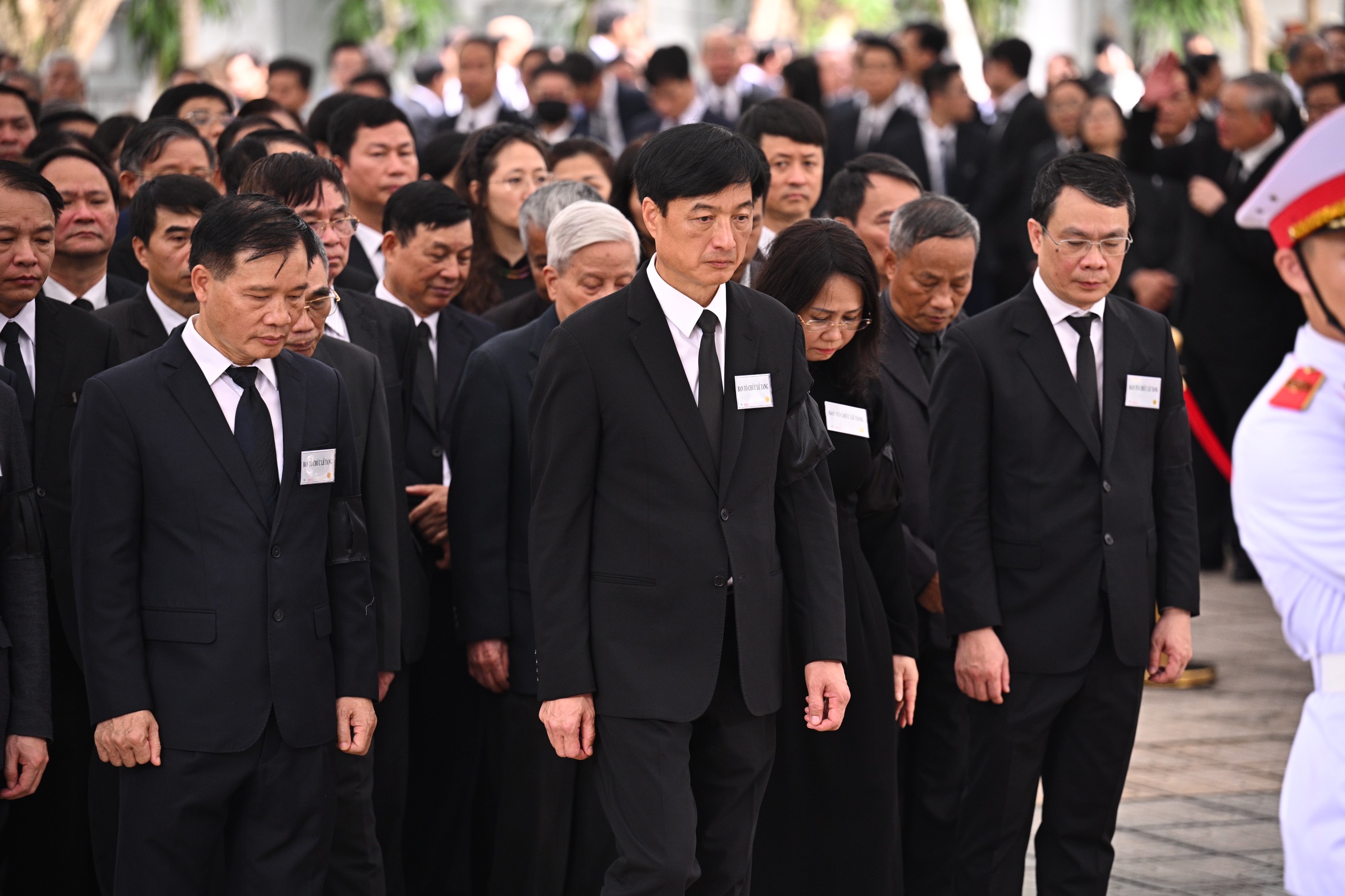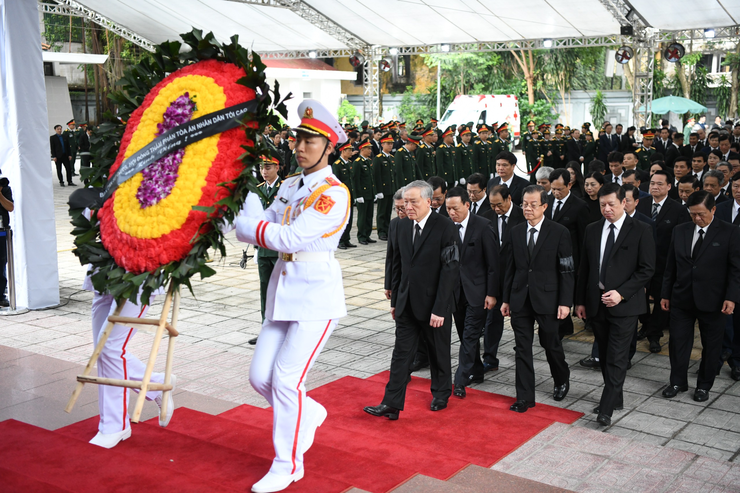 8h51: Đoàn Ban Đối ngoại Trung ương do đồng chí Lê Hoài Trung, Bí thư Trung ương Đảng, Trưởng Ban đối ngoại Trung ương làm Trưởng đoàn vào viếng Tổng Bí thư Nguyễn Phú Trọng.