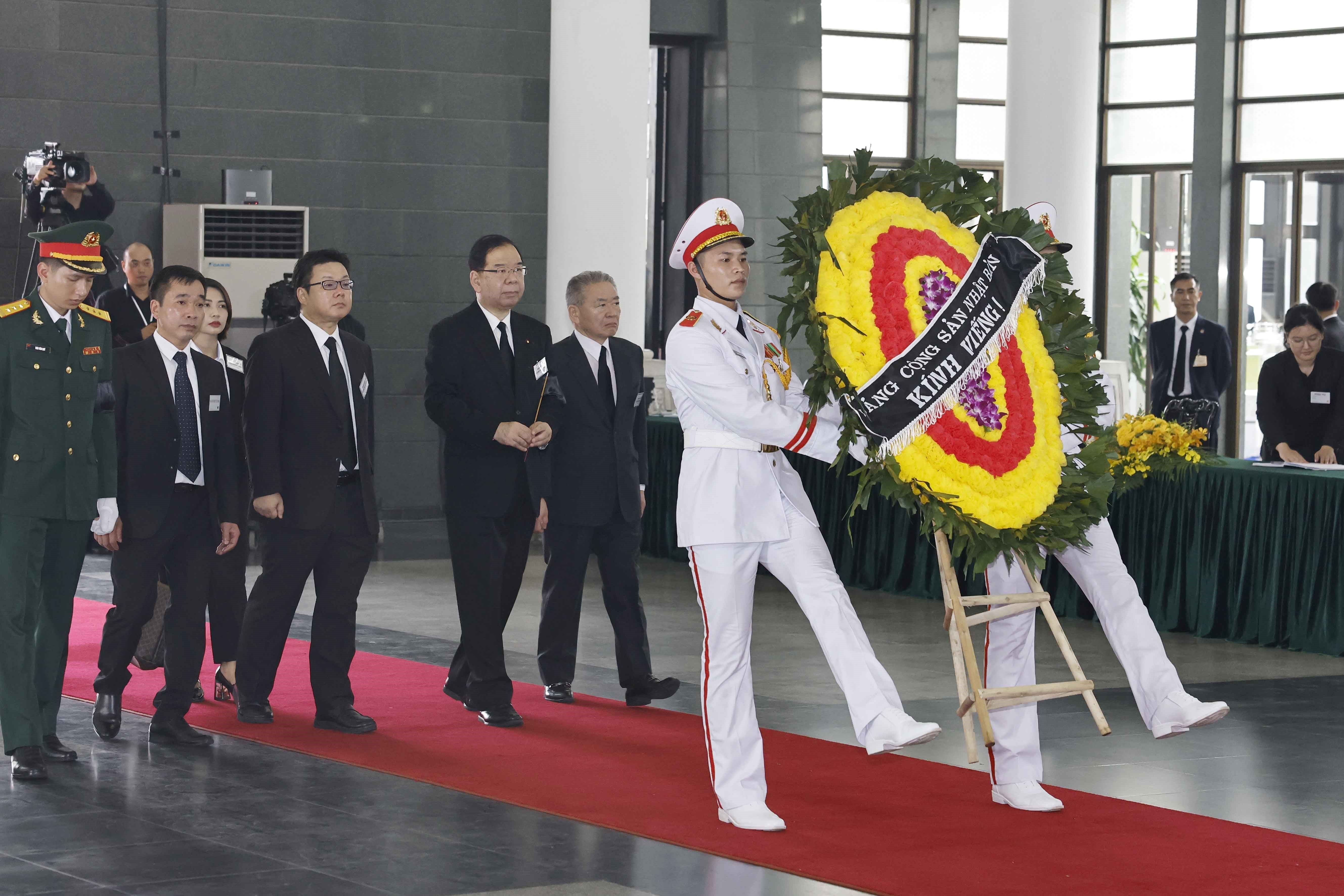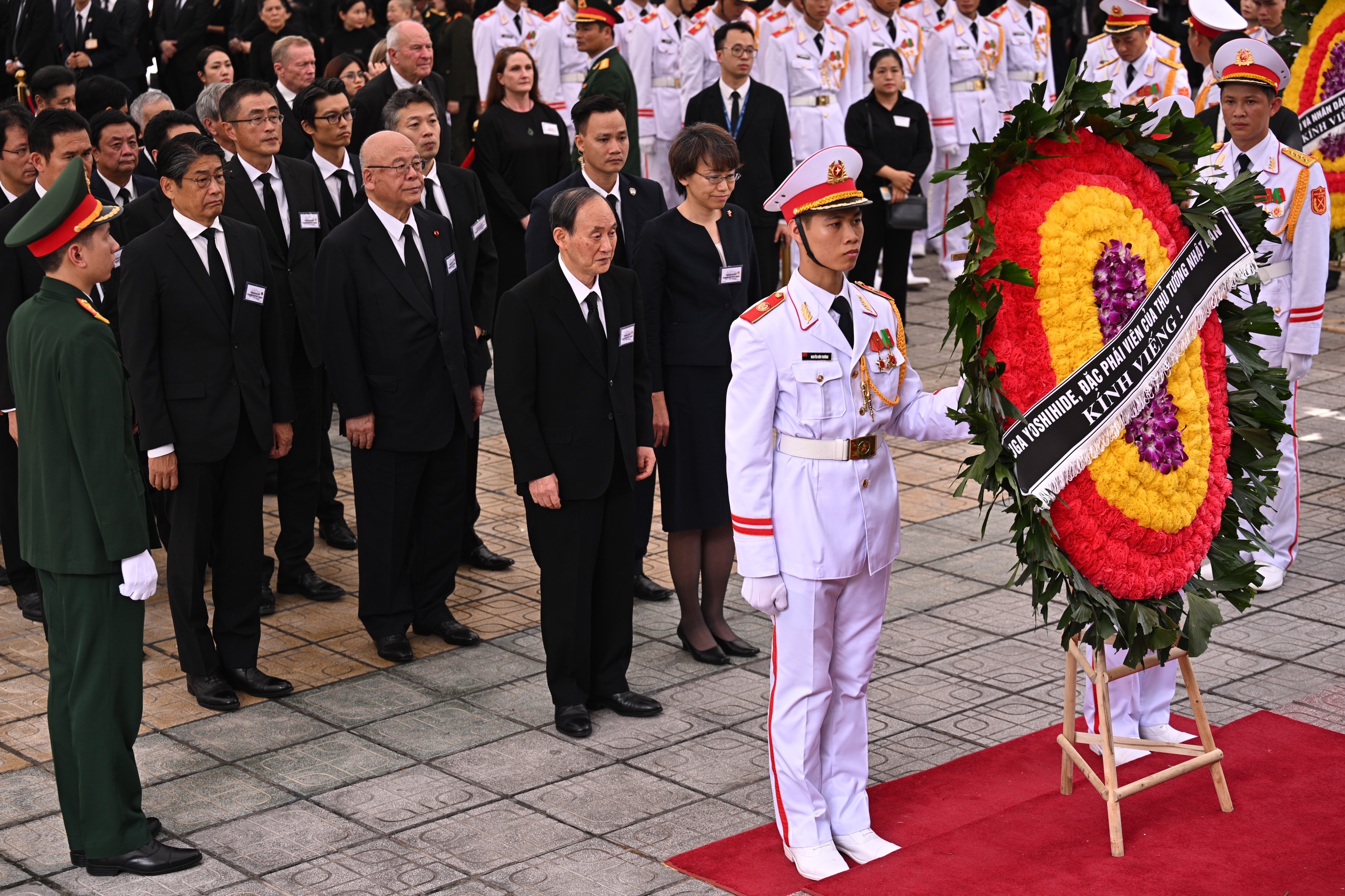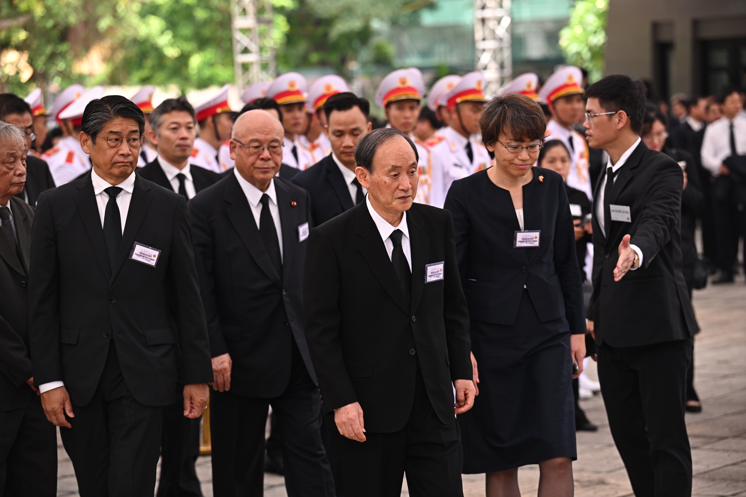 10h 34: Đoàn Nhật Bản do ông Suga Yoshihide (cựu Thủ tướng), đặc phái viên của Thủ tướng Kishida Fumio làm Trưởng đoàn.