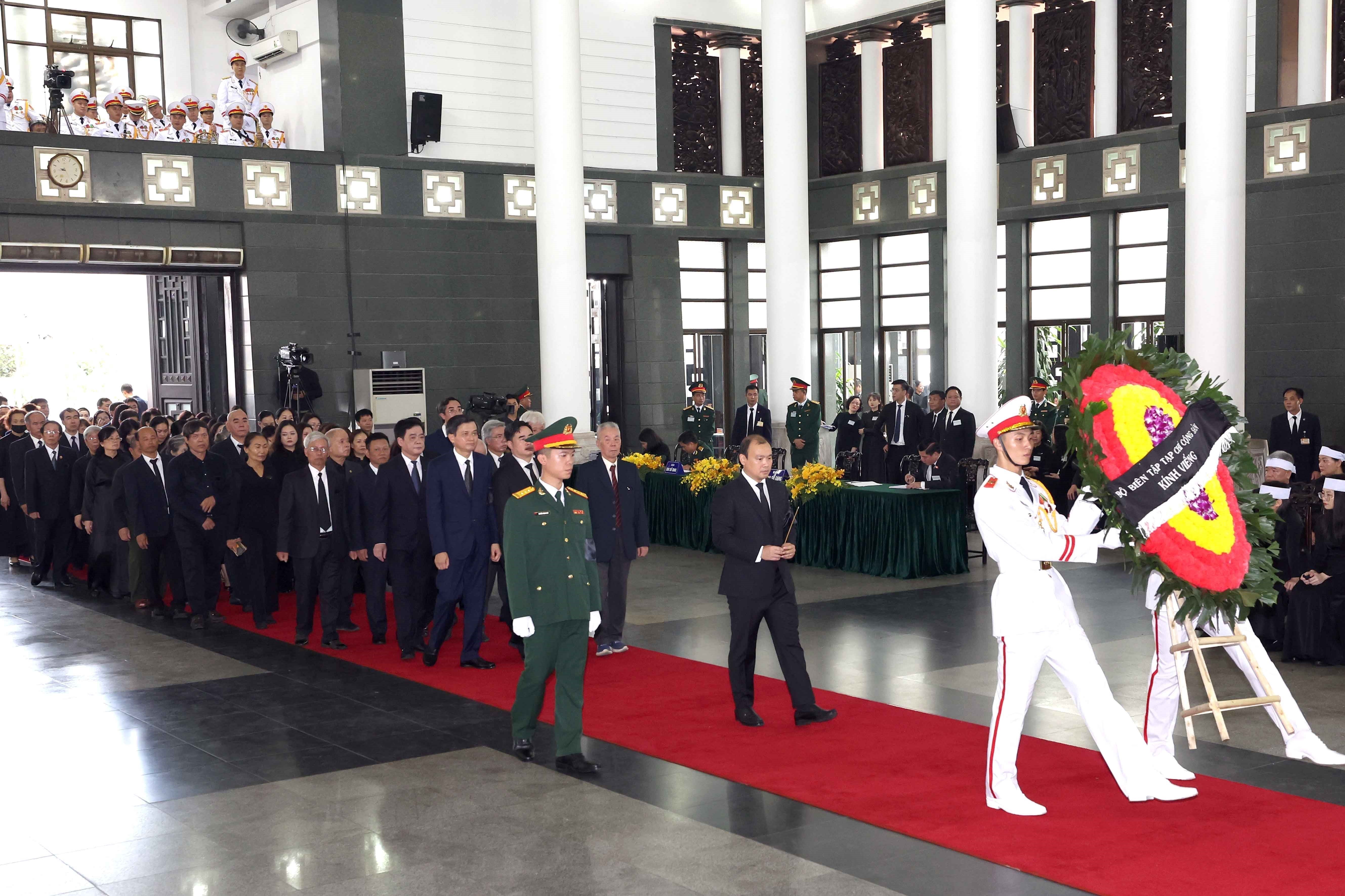 8h41: Đoàn Hội đồng Lý luận Trung ương, Học viện Chính trị quốc gia Hồ Chí Minh, Lớp bồi dưỡng cán bộ quy hoạch Ủy viên Ban Chấp hành Trung ương Đảng khóa XIV do đồng chí Nguyễn Xuân Thắng, Ủy viên Bộ Chính trị, Chủ tịch Hội đồng Lý luận Trung ương, Giám đốc Học viện Chính trị quốc gia Hồ Chí Minh làm Trưởng đoàn vào kính viếng đồng chí Nguyễn Phú Trọng.