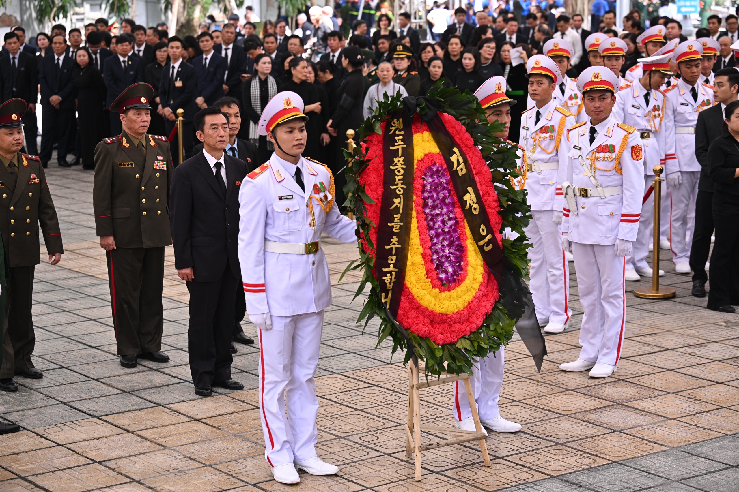 11h 14: Nhà lãnh đạo Triều Tiên, Tổng Bí thư Đảng Lao động Triều Tiên Kim Jong Un gửi vòng hoa viếng Tổng Bí thư Nguyễn Phú Trọng.