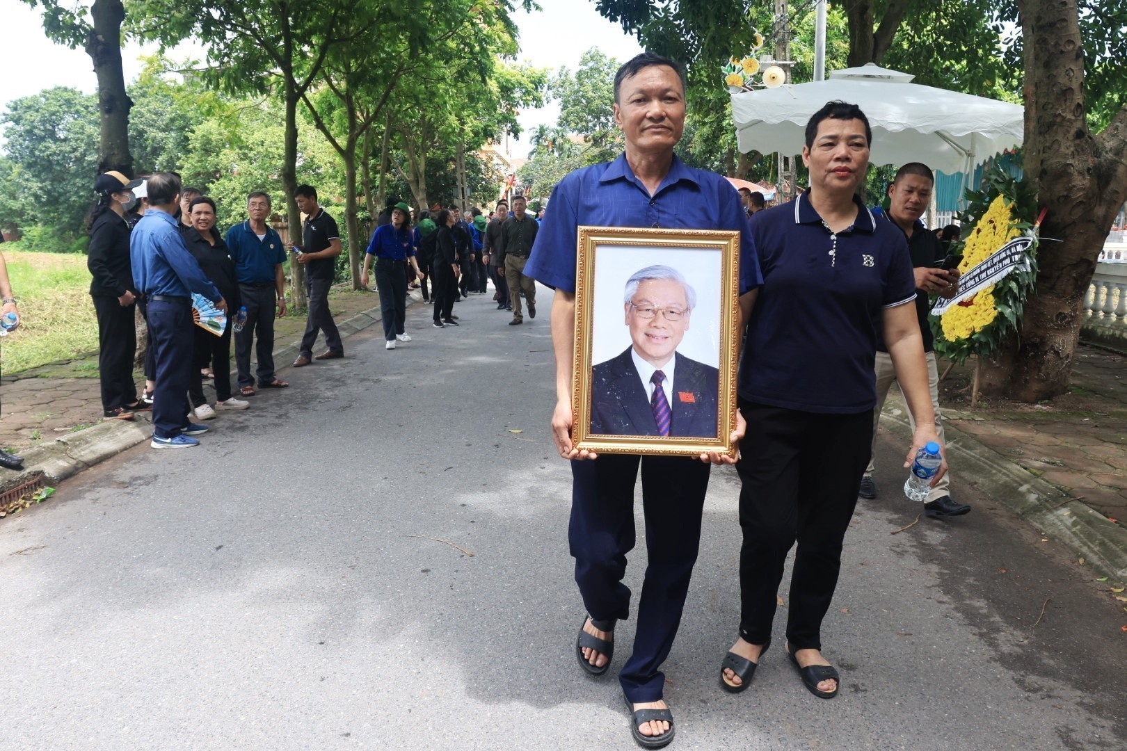 Ông Bùi Văn Đương, thôn Ngọc Đà, xã Văn Lâm, tỉnh Hưng Yên mang theo di ảnh Tổng Bí thư Nguyễn Phú Trọng đến viếng. Ảnh: TTXVN