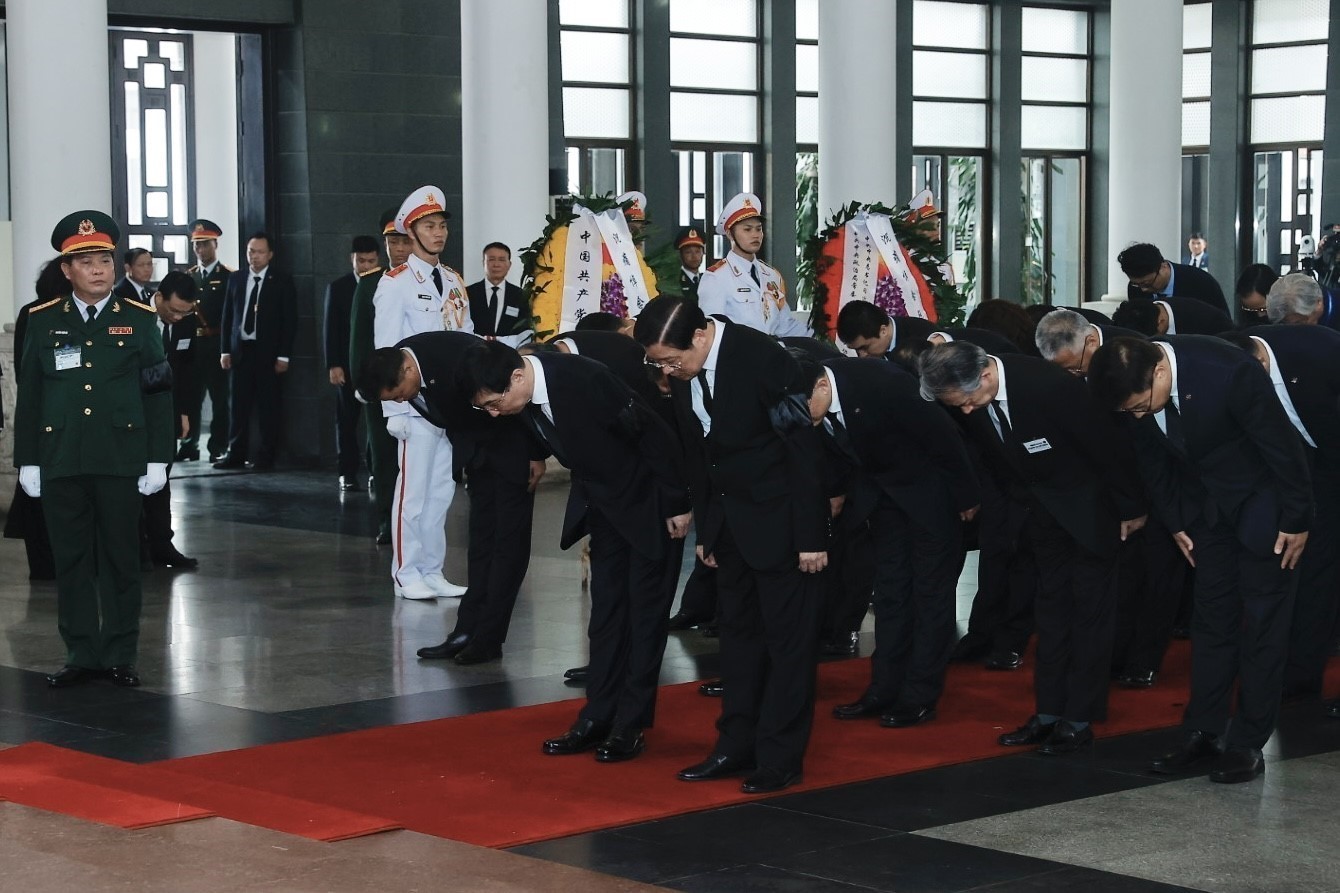 7h49: Đoàn Đại Hàn Dân quốc do Thủ tướng Han Duck-soo, đặc phái viên của Tổng thống Hàn Quốc làm Trưởng đoàn kính viếng đồng chí Nguyễn Phú Trọng.
