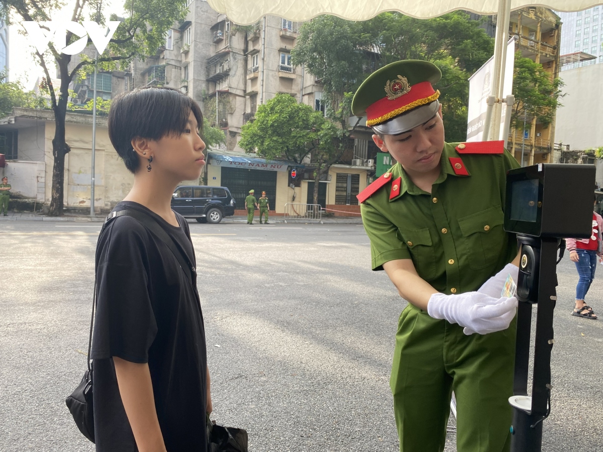 Công an thành phố Hà Nội đã bố trí trang bị các điều kiện cần thiết tại mỗi điểm lắp đặt máy quét mã QR để phục vụ nhân dân thực hiện thao tác quét mã thuận lợi khi đến viếng Tổng Bí thư Nguyễn Phú Trọng.