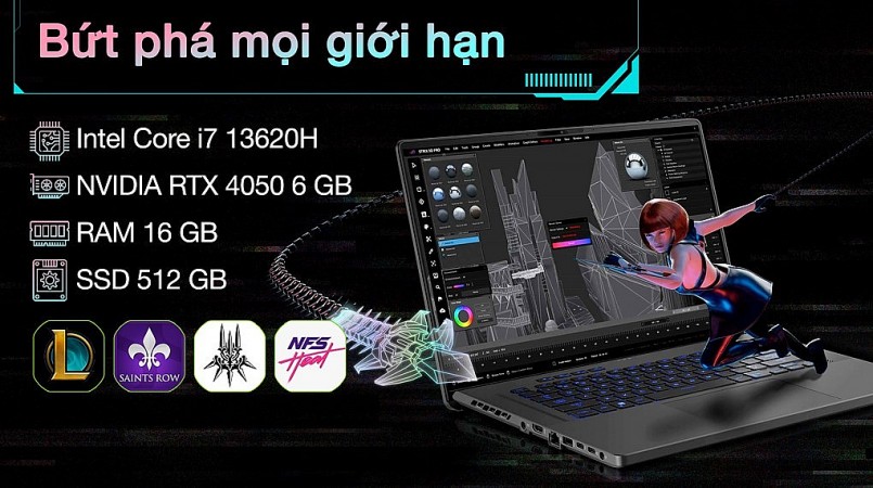 Asus ROG Zephyrus G16 được trang bị cấu hình mạnh mẽ của bộ vi xử lý Intel Core i7 13620H, 10 nhân 16 luồng theo kiến trúc CPU Raptor Lake mới nhất. Nhờ đó tự tin cân tốt mọi tác vụ chơi game đòi hỏi hiệu năng cao.
