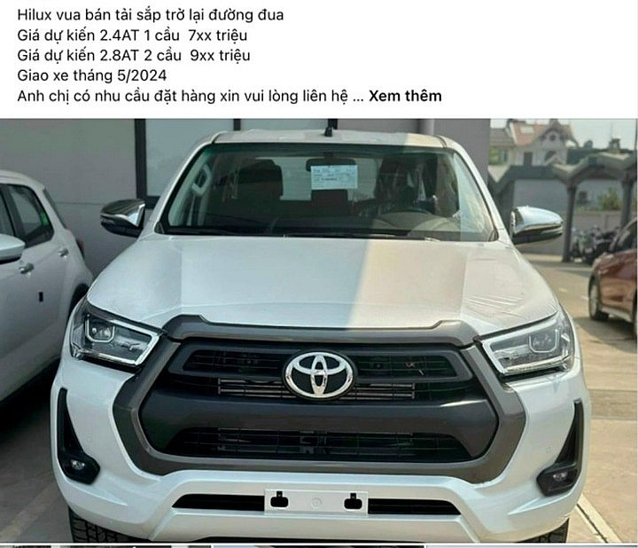 Gần đây, trên các hội nhóm bán tải xuất hiện khá nhiều các bài đăng bán hàng của các tư vấn viên về việc đã sẵn sàng nhận cọc mẫu Toyota Hilux mới đi kèm một số thông tin về giá bán, phiên bản cũng như thời gian dự kiến bàn giao vào tháng 5 năm nay.
