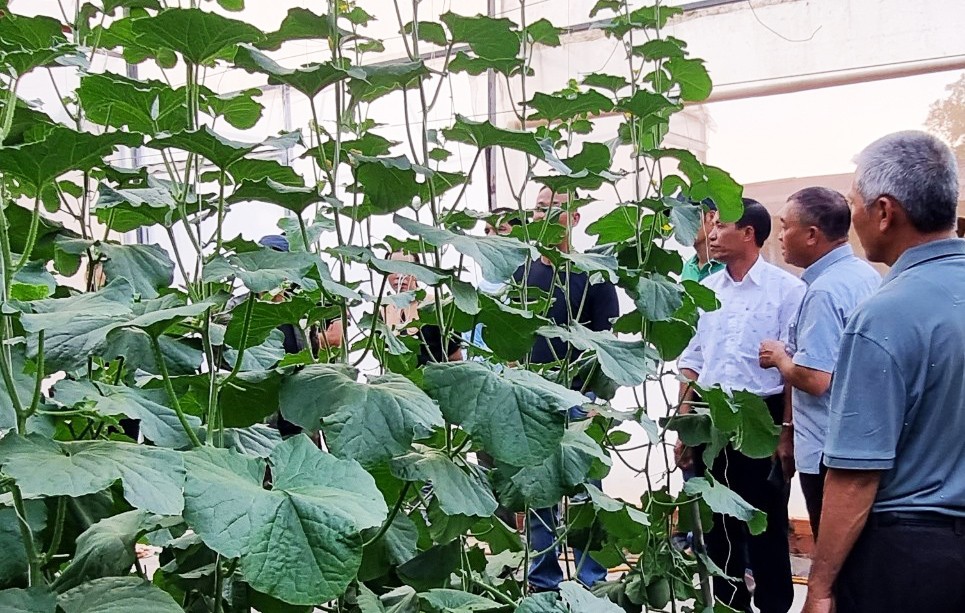 | Người dân tham quan học hỏi mô hình trồng dưa lưới của trang trại Ông Tám. Ảnh: Hoàng Hoài. |