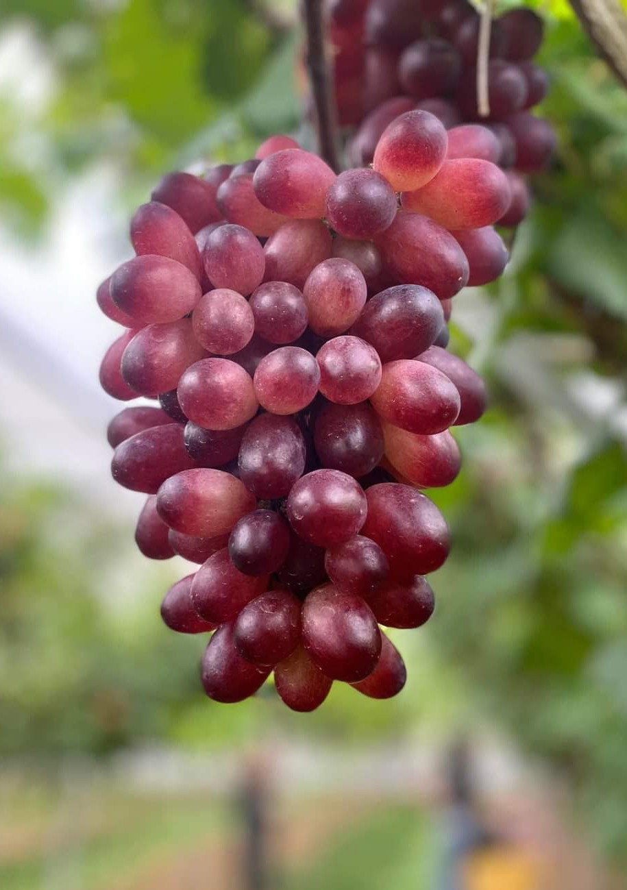 Đặc biệt, giữa năm 2020, trang trại Ông Tám đưa một số giống nho về trồng. Đây là vườn nho đầu tiên ở Đắk Nông. Đáng chú ý, tuy được trồng ở vùng đất hoàn toàn mới lạ nhưng được chăm sóc tốt theo hướng hữu cơ nên vườn nho của trang trại Ông Tám cho quả ngọt, màu sắc bắt mắt, chất lượng không thua kém các vùng chuyên canh nho.