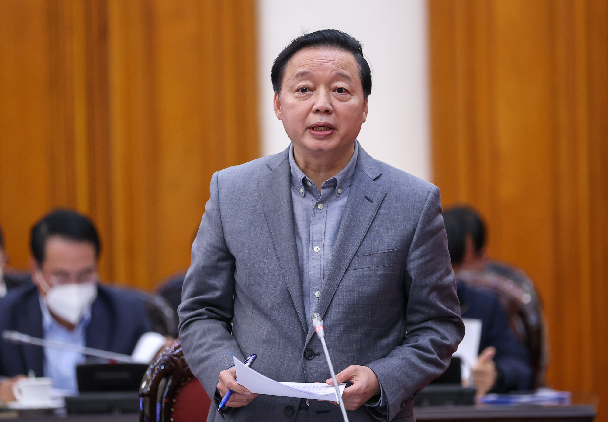 | Bộ trưởng Bộ Tài nguyên và Môi trường Trần Hồng Hà phát biểu tại cuộc họp. Ảnh: VGP/Nhật Bắc |