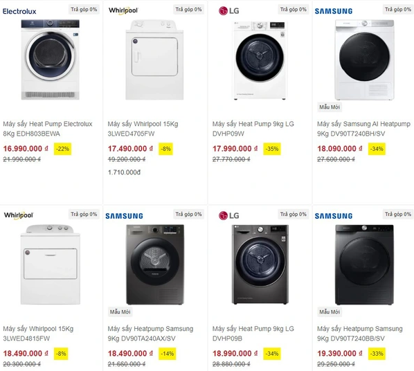 Tuy vậy, các loại máy sấy quần áo có giá không hề rẻ. Dạo quanh một số website bán đồ điện máy, không khó để thấy những mẫu máy sấy quần áo "bèo" nhất cũng phải từ xấp xỉ 7 triệu đồng, còn cao hơn thì đến 1-2 chục triệu, tức là ngang với giá của máy giặt.
