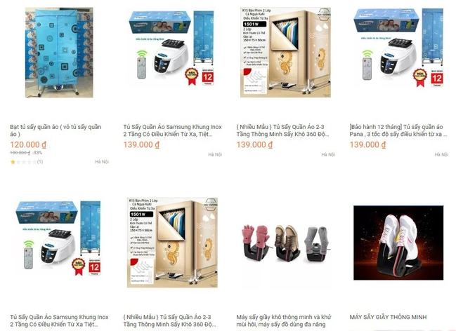 Trái ngược với máy sấy quần áo khá đơn điệu và giống nhau về thiết kế, nếu bạn tìm kiếm "tủ sấy quần áo" trên mạng Internet thì sẽ thấy vô vàn mẫu mã "xanh đỏ tím vàng" như bươm bướm, còn hình dạng thì có 2 loại chính là trụ tròn và hình hộp chữ nhật truyền thống.