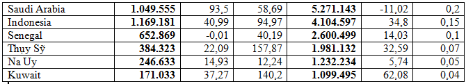 Đứng sau thị trường chủ đạo Trung Quốc là thị trường Mỹ đạt 118,17 triệu USD, giảm 13,7% so với cùng kỳ năm 2022, chiếm 4,4%; Hàn Quốc đạt 106,17 triệu USD, tăng 12,3%, chiếm 4%; Nhật Bản đạt 87,31 triệu USD, tăng 4,9%, chiếm 3,3%; Hà Lan đạt 78,37 triệu USD, tăng mạnh 66,8%, chiếm 2,9%...