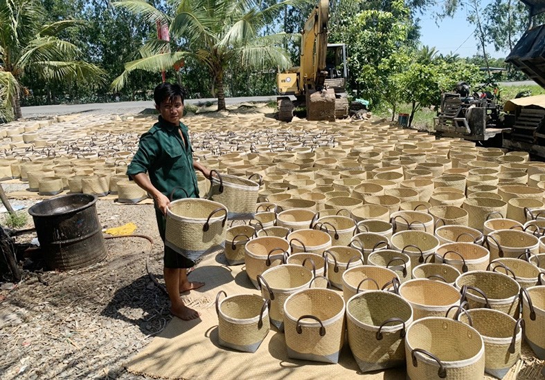 Từ những thân cây cỏ bàng, người thợ sơ chế, phơi khô và tết lại, những chiếc túi, giỏ mũ được làm bởi các công đoạn thủ công hoàn toàn. Cùng sự kết hợp khéo léo của các nghệ nhân đã tạo nên những sản phẩm thủ công mỹ nghệ độc đáo, được nhiều người ưa chuộng không chỉ vì tính thẩm mỹ và ứng dụng thực tiễn cao mà còn vì tính thân thiện môi trường, an toàn cho người sử dụng.