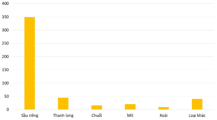 | Kim ngạch xuất khẩu các loại quả trong tháng 10/2023 (Đơn vị: triệu USD) |