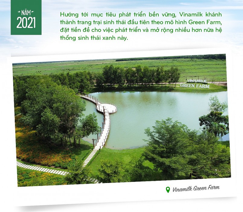 Năm 2021, trong bối cảnh Covid-19 ảnh hưởng lớn đến đời sống và sản xuất, những trang trại sinh thái Green Farm đầu tiên của Vinamilk vẫn chính thức được ra mắt, đánh dấu bước tiến mới trên hành trình phát triển bền vững.