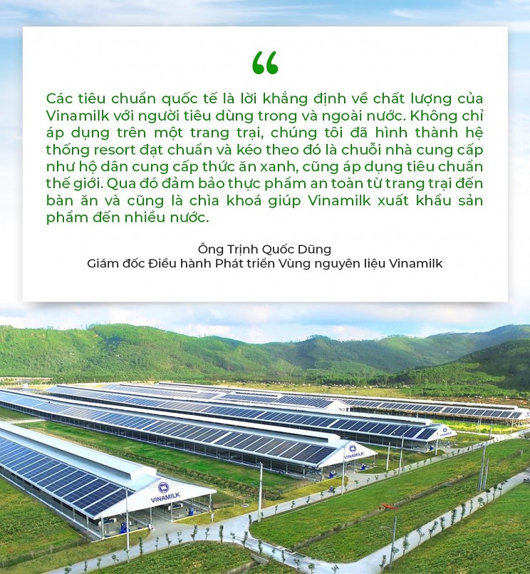 Không chỉ nỗ lực tạo dựng vùng nguyên liệu sữa trong nước, Vinamilk còn cho thấy tầm nhìn xa và chiến lược rõ ràng khi xác định phải xây dựng và vận hành các trang trại theo tiêu chuẩn quốc tế cao nhất, được thế giới công nhận.