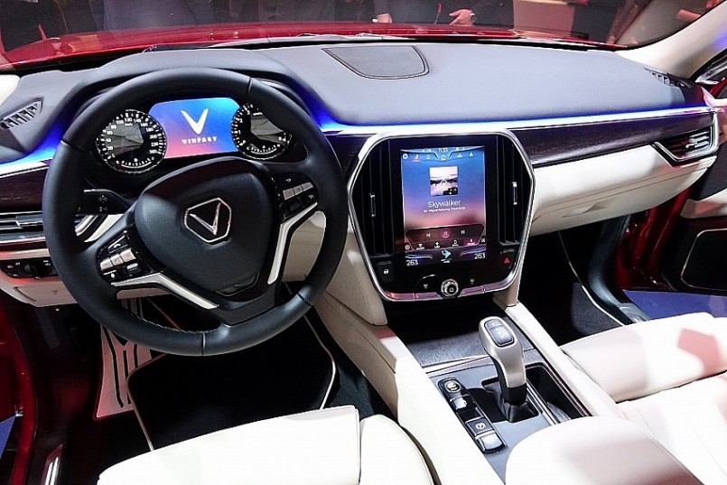 Tiến vào trong nội thất, VinFast Lux SA2.0 được trang bị hệ thống thông tin giải trí hiện đại, dàn âm thanh 9 loa, điều hoà 2 vùng độc lập. Vô-lăng 3 chấu của xe có logo VinFast nằm ở chính giữa, được tích hợp các phím chức năng như chỉnh âm thanh, đàm thoại rảnh tay. Màn hình xe hiện thị đầy đủ thông tin giải trí với kích thước lớn và bắt mắt.