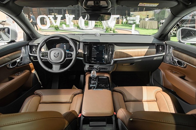 Bước vào khoang nội thất của Volvo S90 Recharge, gây ấn tượng bởi sự rộng rãi và sang trọng. Nhờ trục kéo dài lên đến 3.061 mm nên đã đưa chiều dài tổng thể xe lên đến 5.090 mm - lớn nhất trong phân khúc.