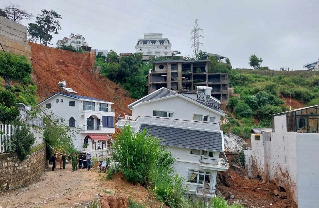 Trước đó, khoảng 3h ngày 29/6, tại hẻm 36, đường Hoàng Hoa Thám, TP Đà Lạt bờ ta luy cao chừng 30m, bất ngờ đổ sập, kéo theo nhiều khối đất đá ập xuống 3 căn nhà dưới thung lũng, 7 người đang ngủ bị đất đá vùi lấp.
