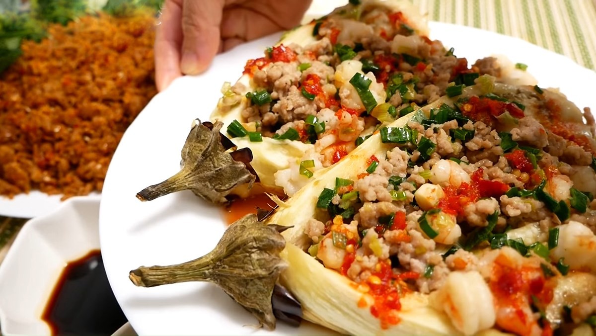 Cà tím sốt tôm thịt nhìn trông hấp dẫn bởi lớp mỡ hành bóng bẩy phía trên, vị ngọt tươi, mềm của cà tím xen lẫn với vị ngọt dai của thịt tôm, ăn hoài mà không thấy ngán. Dù là người lớn tuổi hay trẻ nhỏ thì món này cũng rất dễ ăn và có giá trị dinh dưỡng cao.