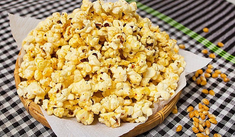 Món ăn vặt phù hợp với những buổi xem bóng, không thể không nhắc tới đó là bắp rang bơ. Những hộp bắp rang bơ thơm lừng, từng miếng bỏng ngô giòn tan trong miệng. Vừa xem bóng đá vừa nhâm nhi bỏng ngô cũng là một lựa chọn tuyệt vời. Bắp rang bơ cung cấp năng lượng cho người xem bóng đá. Tưng bừng khí thế suốt cả trận đấu. Bắp rang bơ thì các bạn có thể tự nổ tại nhà hoặc mua sẵn ở các cửa hàng bán sẵn.