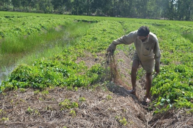 Một vườn khoai mỡ của nông dân bị chết sau khi dùng phải thuốc BVTV rởm.