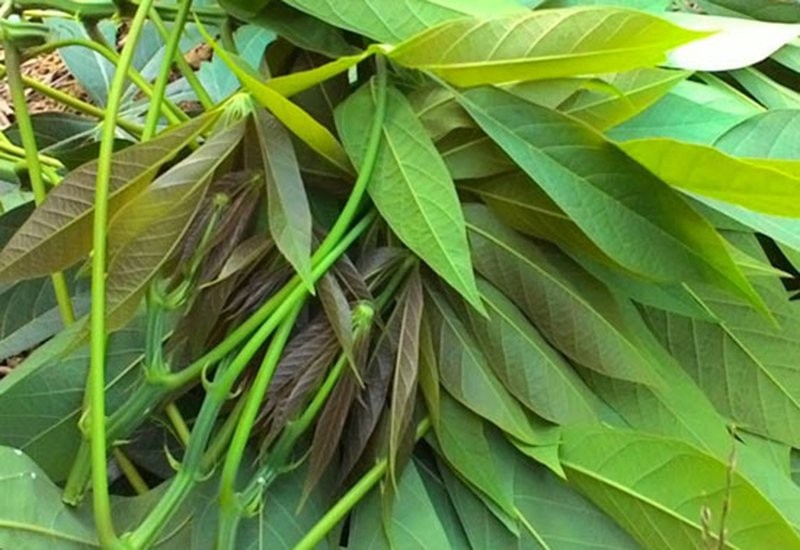 | Rau sắn sau khi hái thu hoạch, được chọn lá ngọn, non |