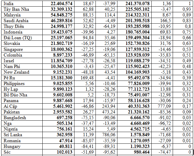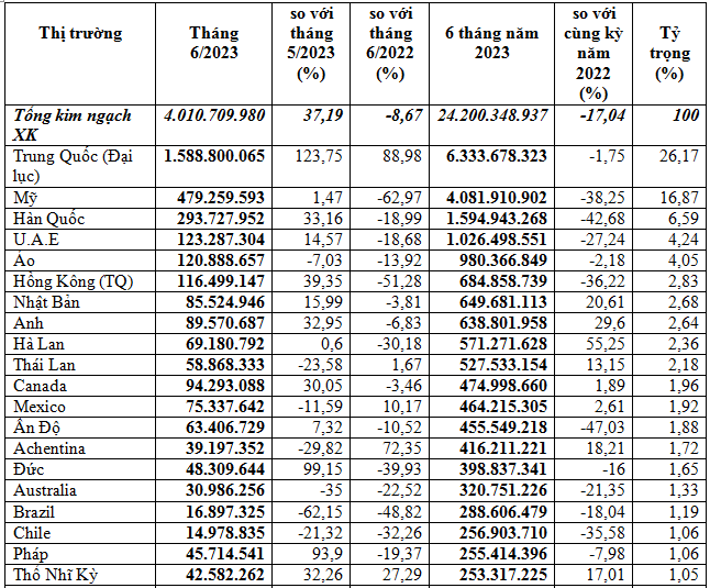 (Tính toán theo số liệu công bố ngày 12/7/2023 của TCHQ)