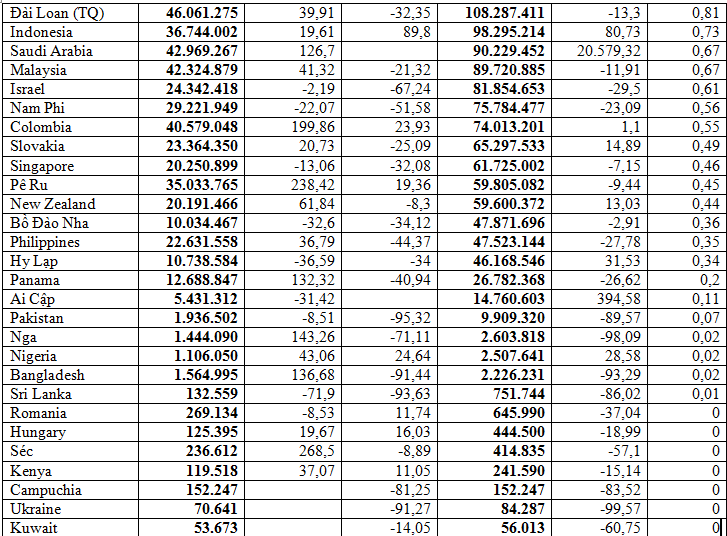 (Tính toán theo số liệu công bố ngày 14/4/2023 của TCHQ)