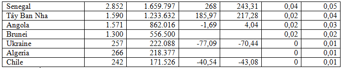 Tiếp sau đó là thị trường Trung Quốc chiếm trên 12% trong tổng lượng và tổng kim ngạch, đạt 807.947 tấn, tương đương 408,49 triệu USD, giá trung bình 505,6 USD/tấn, giảm 19,2% về lượng và giảm 17,4% kim ngạch; giá tăng nhẹ 2,2% so với cùng kỳ năm 2021.